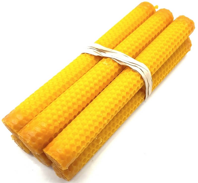 Nuestras velas de cera de abeja virgen son 100% naturales hasta la mecha.